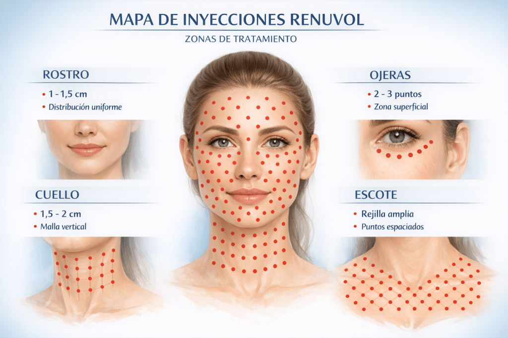 Esto no es “ponemos agujas y luego aplicamos RENUVOL como si fuera un gel cualquiera”. Se define un objetivo, una estrategia de semanas y un seguimiento.