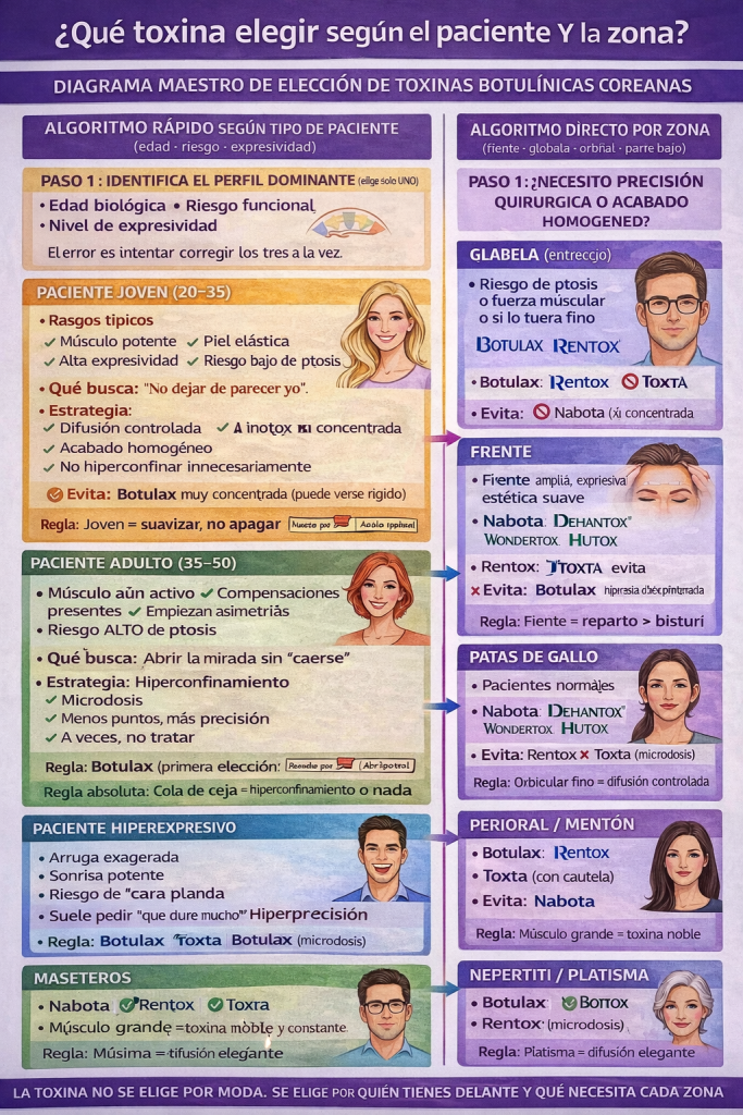 No olvides que no existe una toxina botulínica universalmente mejor. Existe la toxina correcta para una zona concreta, en un rostro concreto y en un momento concreto.